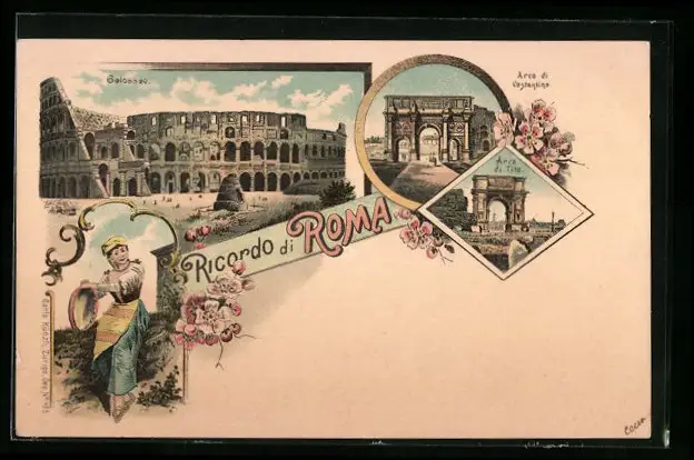 Lithographie Roma, Colosseo, Arco di Costantine, Arco di Tito