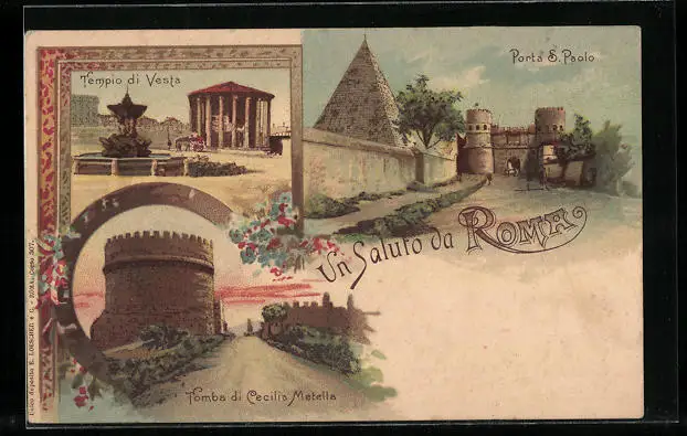 Lithographie Roma, Tempio di Vesta, Tomba di Cecilie Metella