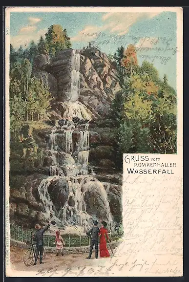 Lithographie Romkerhaller Wasserfall, Gesamtansicht