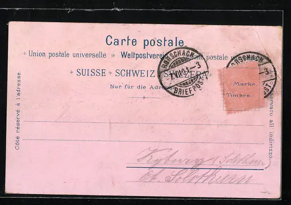gelaufen 1901, Briefmarke entfernt, Eckknick oben li., guter Zustand