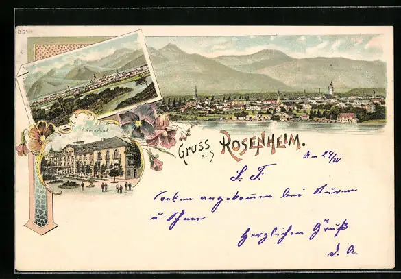 Lithographie Rosenheim, Ortsansicht und Kaiserbad