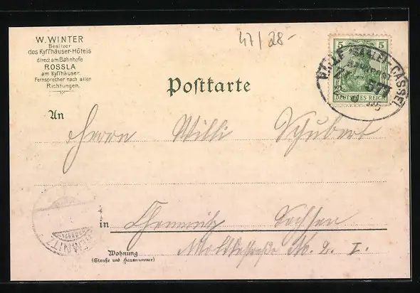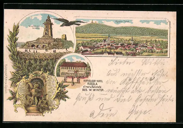 Lithographie Rossla, Totalansicht, Kyffhäuser-Hotel W. Winter