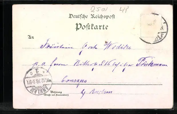 gelaufen 1898, Briefmarke entfernt, guter Zustand