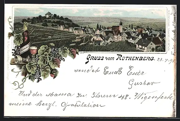 Lithographie Rothenberg / Stuttgart, Gesamtansicht aus der Vogelschau