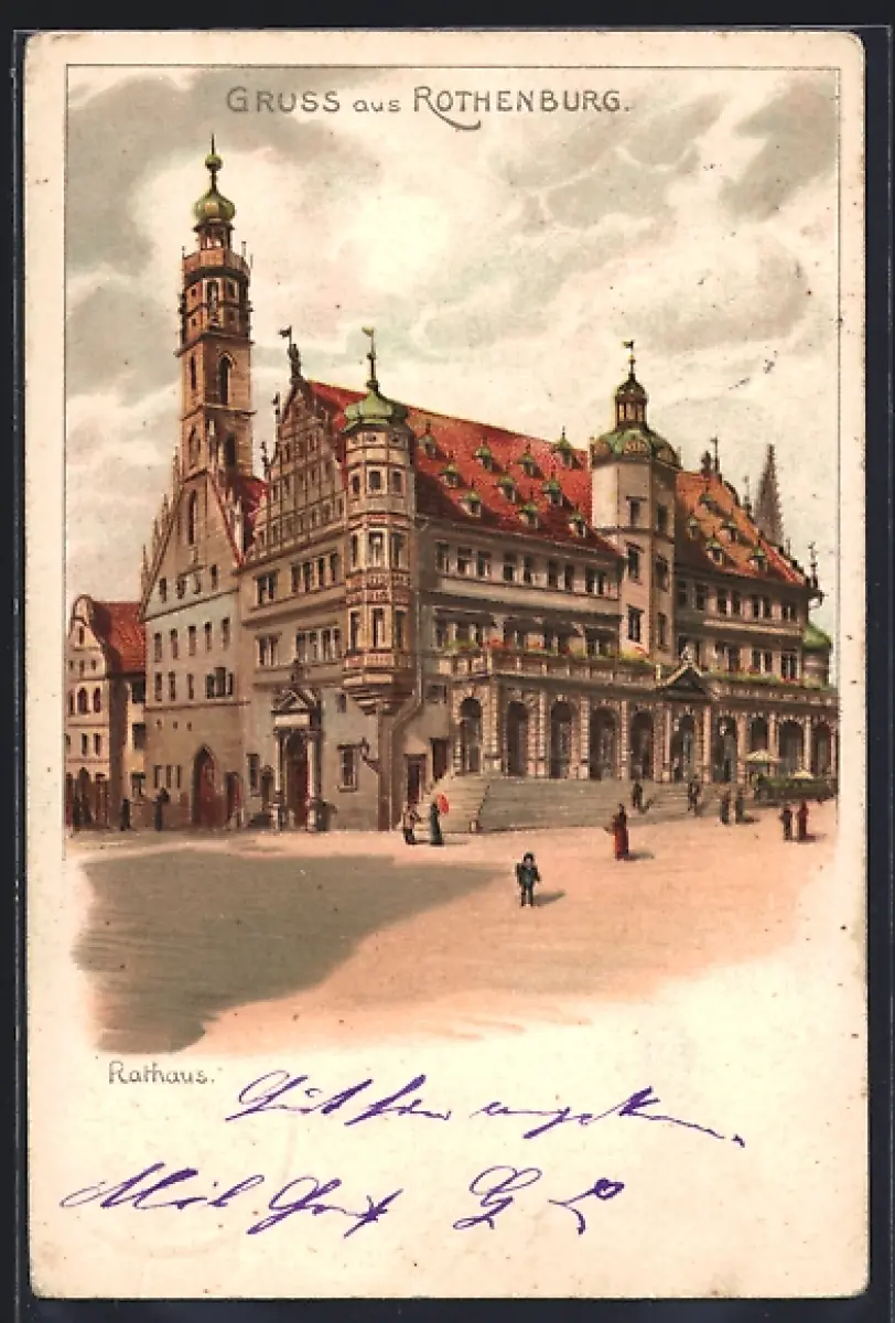 Lithographie Rothenburg / Tauber, Rathaus, Aussenansicht