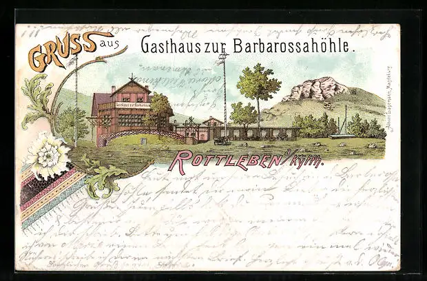 Lithographie Rottleben a. Kyffh., Gasthaus zur Barbarossahöhle