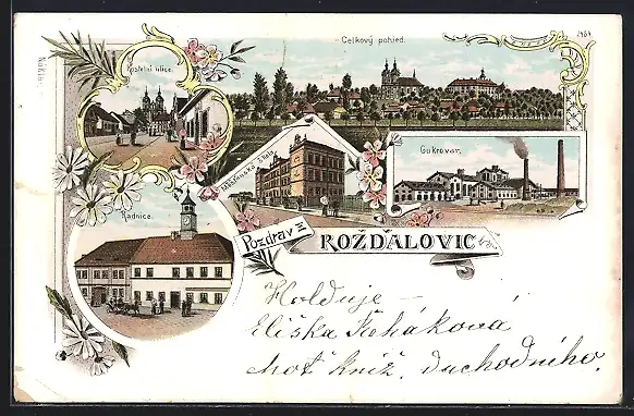 Lithographie Rozdalovice, Celkovy pohled, Zamek, Kostelni ulice