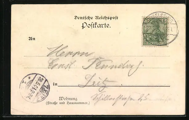 gelaufen 1901, Eckknick rechts unten, guter Zustand