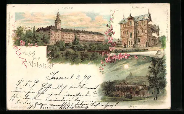 Lithographie Rudolstadt, Schloss, Anger