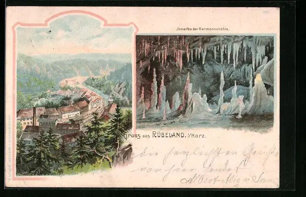 Lithographie Rübeland /Harz, Hermannshöhle, Inneres der Hermannshöhle