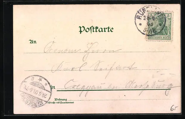 gelaufen 1903, Eckknick unten li., guter Zustand
