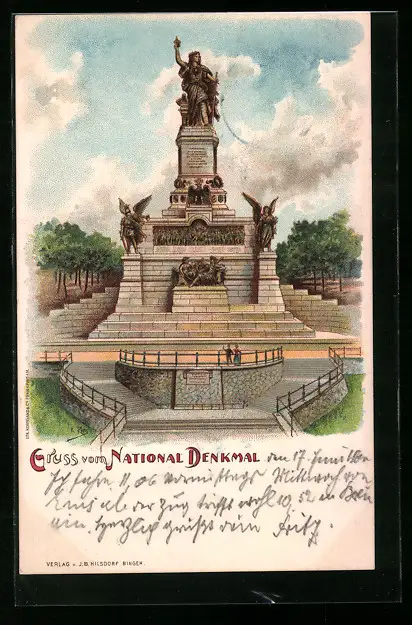 Lithographie Rüdesheim, National-Denkmal auf dem Niederwald