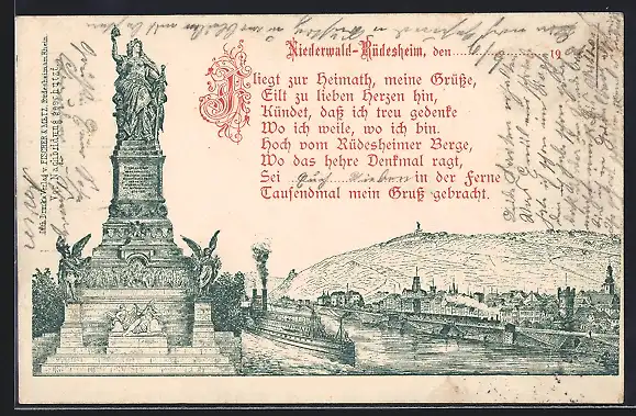 Lithographie Rüdesheim, Niederwald-Denkmal