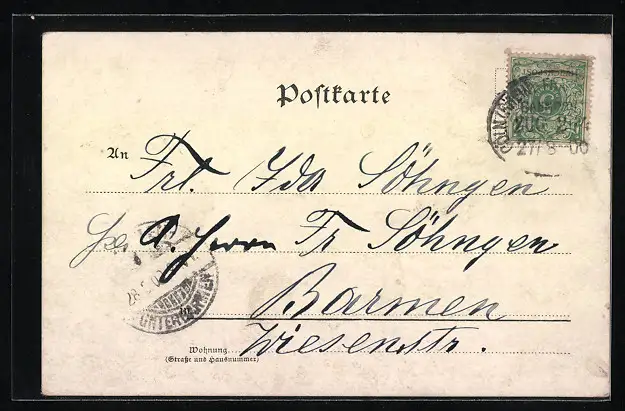 gelaufen 1900, leicht fleckig, Stempelspur, guter Zustand