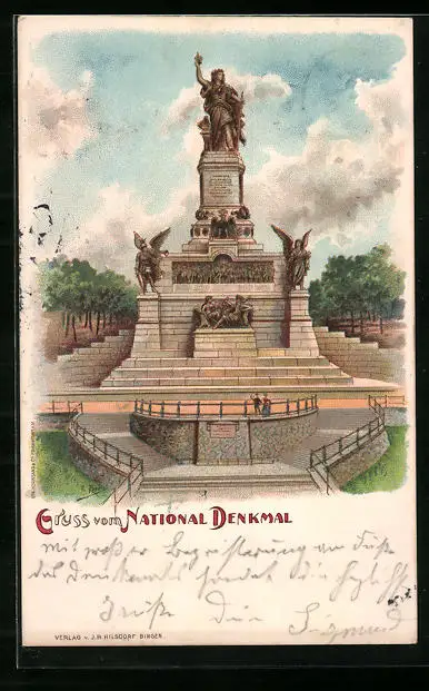 Lithographie Rüdesheim a. Rhein, National-Denkmal