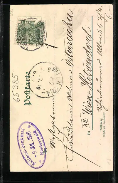 Personenbezogene Daten auf der Rückseite der Karte wurden durch blauen Textmarker unkenntlich gemacht. Die blauen Stellen sind auf die Vorderseite durchgeweicht und wirken sich negativ auf das Postkartenfoto aus