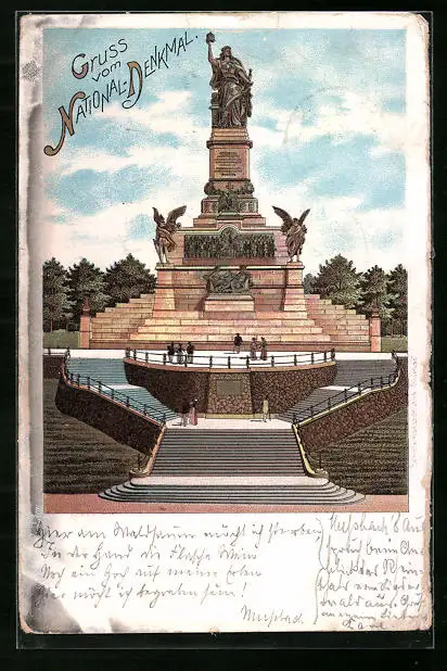 Lithographie Rüdesheim a. Rhein, Nationaldenkmal