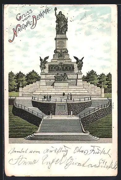 Lithographie Rüdesheim a. Rhein, Nationaldenkmal