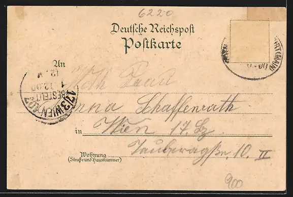 gelaufen 1900, Briefmarke entfernt, Eckknick li. oben, rückseitig Klebe- und Papierreste, guter Zustand
