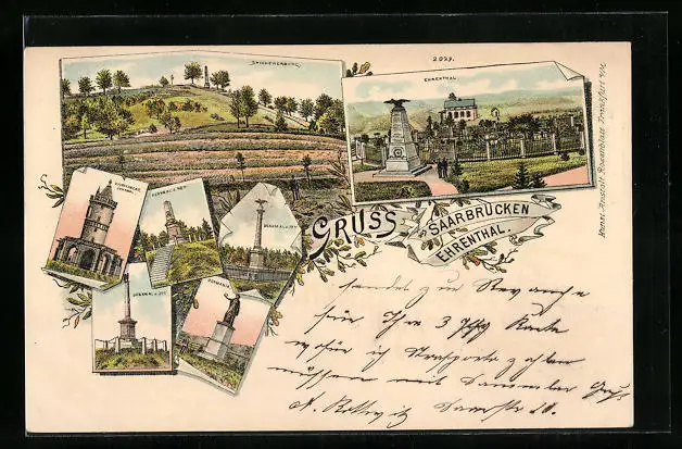 Lithographie Saarbrücken /Ehrenthal, Spicherberg, Denkmäler
