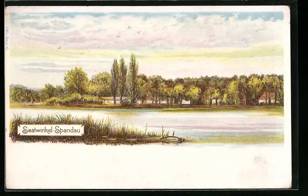 Lithographie Saatwinkel-Spandau, Uferpartie am Saatwinkel