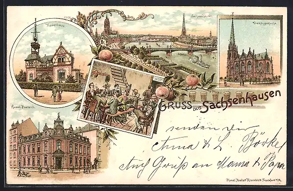 Lithographie Sachsenhausen, Ruderhaus, Hof, Kaiserliches Postamt