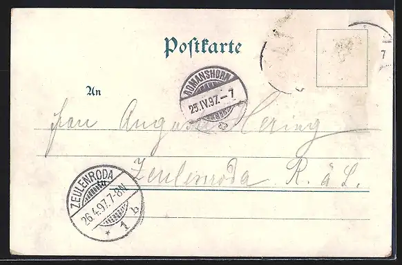 gelaufen 1897, Briefmarke entfernt, guter Zustand