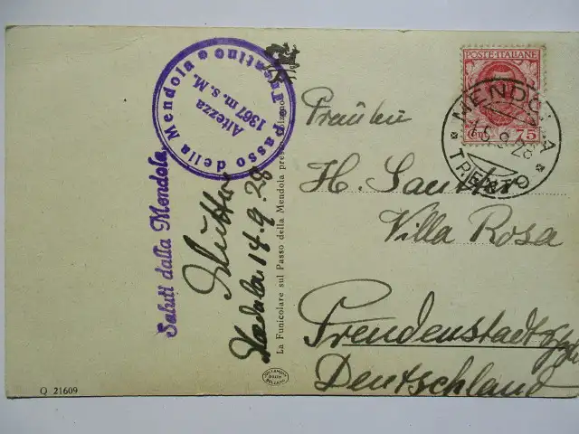 zusätzlich gestempelt: Passo della Mendola Altezza 1367 m. M. trentino