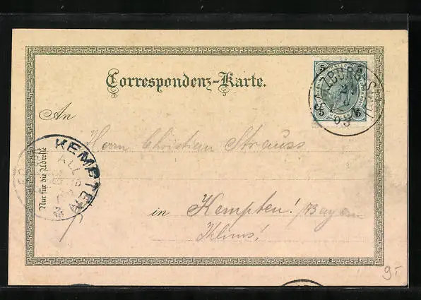Personenbezogene Daten auf der Rückseite der Karte wurden durch blauen Textmarker unkenntlich gemacht. Die blauen Stellen sind auf die Vorderseite durchgeweicht und wirken sich negativ auf das Postkartenfoto aus