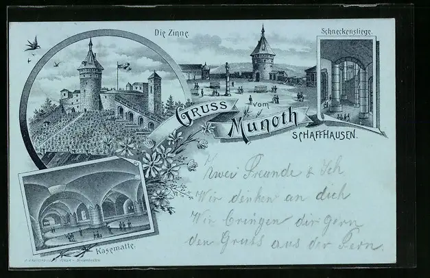 Lithographie Schaffhausen, Munoth, Die Zinner, Schneckenstiege