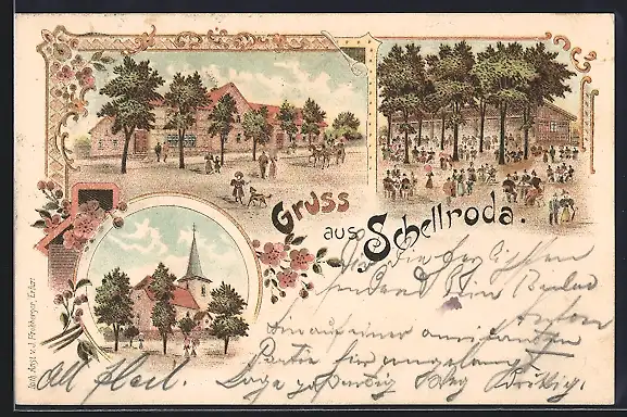 Lithographie Schellroda, Gasthaus, Kirche, Gehöft