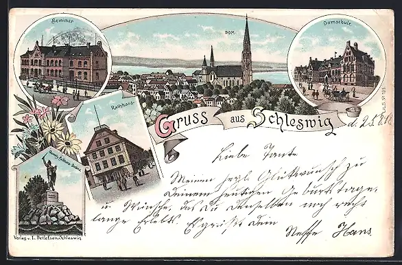Lithographie Schleswig, Domschule, Seminar, Rathaus