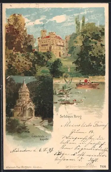 Lithographie Schloss Berg, Gedächtnis-Kapelle, Private Stadtpost