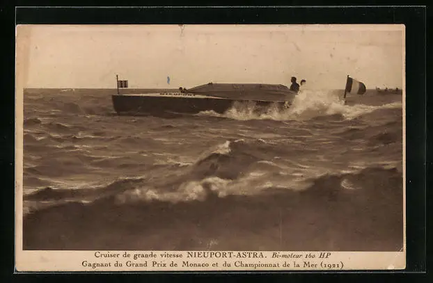 Lithographie Schnellboot Nieuport-Astra in Fahrt, Wassersport