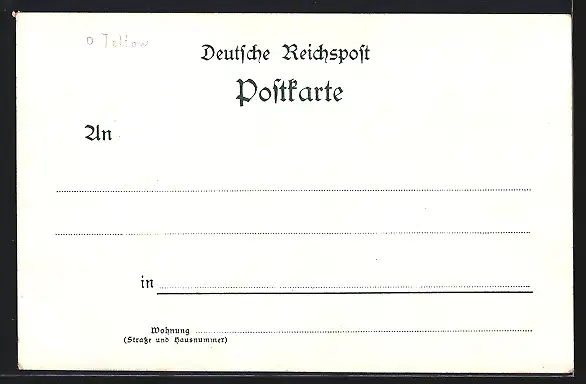 Personenbezogene Daten auf der Rückseite der Karte wurden durch blauen Textmarker unkenntlich gemacht. Die blauen Stellen sind auf die Vorderseite durchgeweicht und wirken sich negativ auf das Postkartenfoto aus