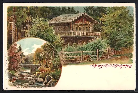 Lithographie Schwarzburg, Gasthaus Schweizerhaus