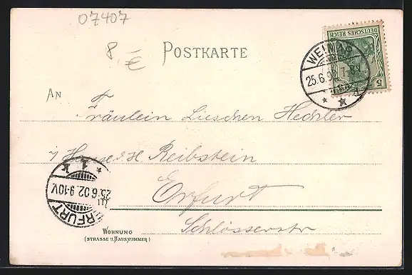 gelaufen 1902, rückseitig Oberflächenschaden, guter Zustand