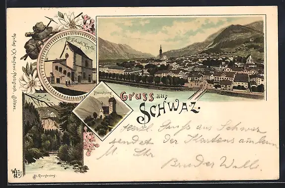 Lithographie Schwaz, Michaels-Kapelle, Freundsberg, St. Georgenberg