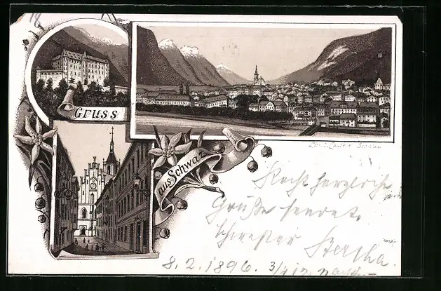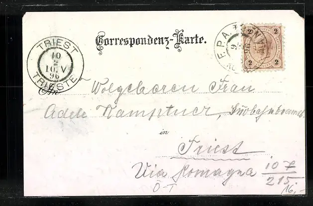 gelaufen 1896, Eckschäden oben links und rechts, guter Zustand