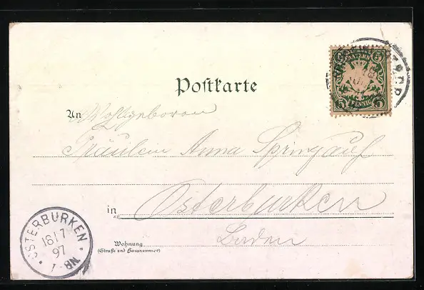 gelaufen 1897, Eckknick oben links, guter Zustand