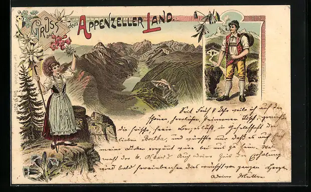 Lithographie Schweiz, Appenzeller Land, Appenzeller in Tracht
