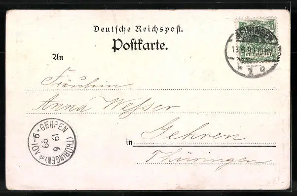 gelaufen 1899, Eckknick li. oben, Abriebspur oben li., guter Zustand