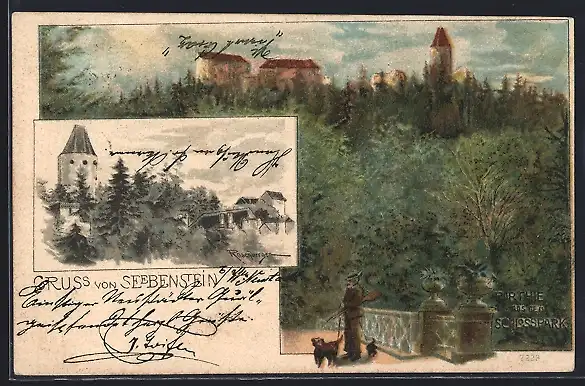 Lithographie Seebenstein, Partie aus dem Schlosspark