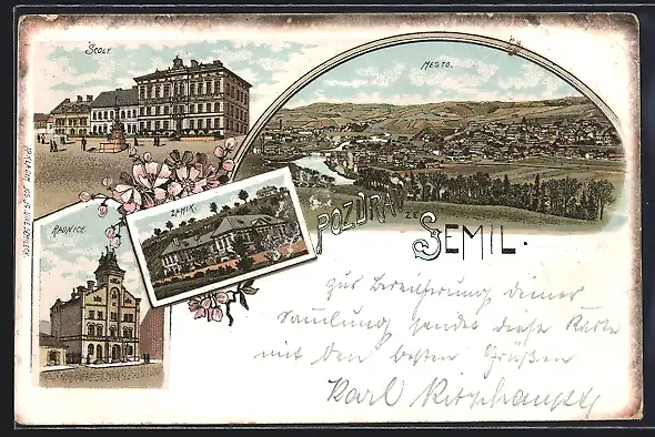 Lithographie Semily, Scoly, Radnice, Zamik, Mesto