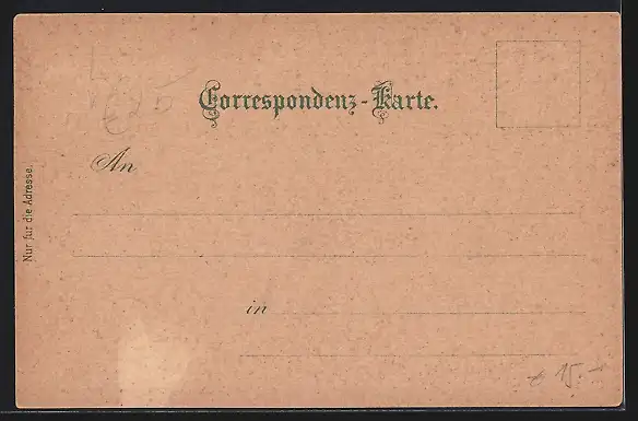 Personenbezogene Daten auf der Rückseite der Karte wurden durch blauen Textmarker unkenntlich gemacht. Die blauen Stellen sind auf die Vorderseite durchgeweicht und wirken sich negativ auf das Postkartenfoto aus