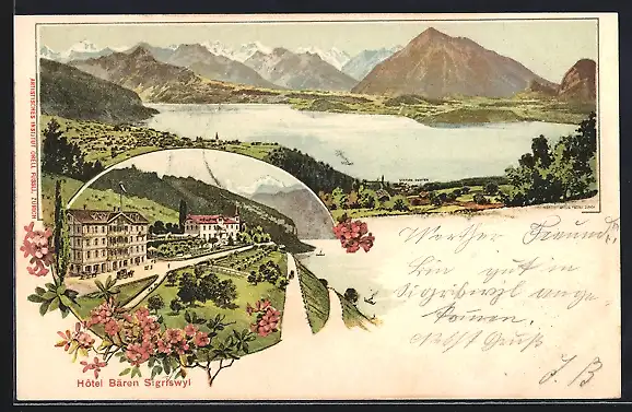 Lithographie Sigriswyl, Hotel zum Bären mit Seeblick