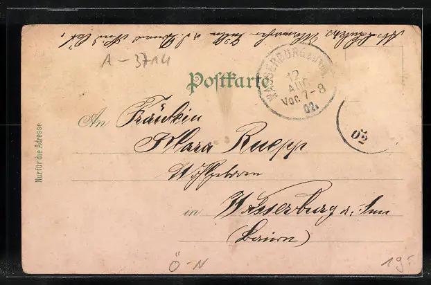 gelaufen 1902, Briefmarke entfernt, guter Zustand