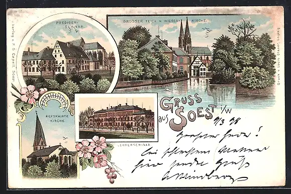 Lithographie Soest, Predigerseminar, Lehrerseminar, Reformierte Kirche