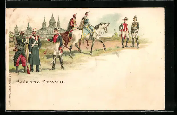 Lithographie Spanien, Spanische Soldaten in Uniform zu Pferd, Ejército Espanol