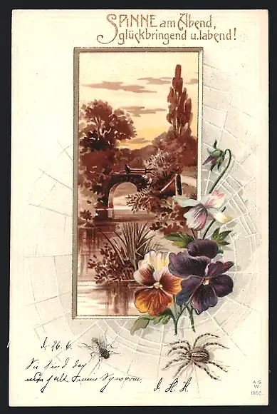Lithographie Spinne am Abend, glückbringend und labend!